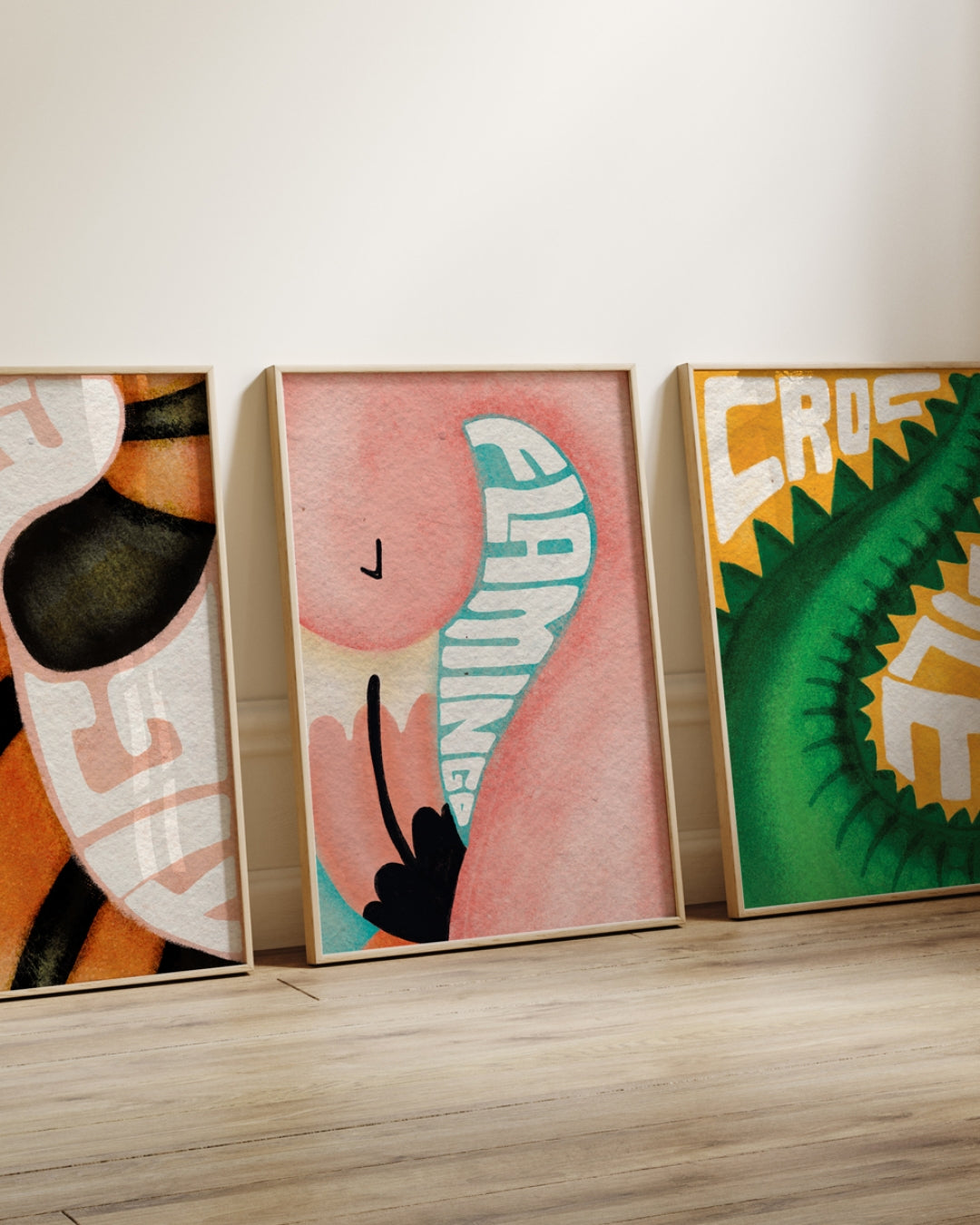 Blush tones and gentle curves make Pinky a joyful statement piece for your nursery or playroom. This close-up of a flamingo’s curves and elegance brings warmth, colour, and a touch of whimsy to any child’s space. Pair Pinky with Tiger Tiger and Snappy from The Closer Collection for a vibrant trio full of personality.